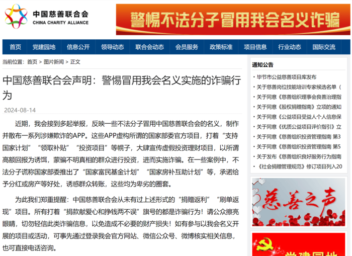 “慈聯(lián)APP”:民族資產(chǎn)解凍類詐騙,不法分子冒用中國慈善聯(lián)合會(huì)的名義,制作并散布一系列涉嫌欺詐的APP,實(shí)施詐騙活動(dòng)。