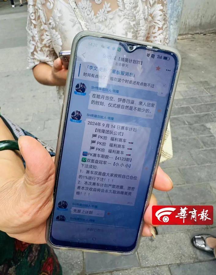 采訪時,記者在受騙者手機里看到,“蘿卜密聊”App上有多個群,其中一個群名叫“SH傳媒精英計劃群”,群里發(fā)“任務”的人的名字叫“SH傳媒創(chuàng)始人-錢隆”。9月14日,他發(fā)布了當天的“賽車計劃”,并且說“賽車雙面盤大家按照自己倉位的1%下注”,還提醒“本次賽車計劃嚴禁泄密”。