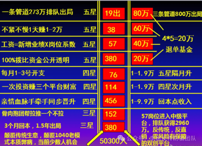 這段時間,李旭反傳防騙團隊揭露了多起“50300”及其變種的傳銷內(nèi)幕,無論是“51800”還是“53340”,它們多數(shù)打著“資本運作”、“民間互助小額理財”、“民間小額貸款”等旗號,將傳銷慣用的“五級三晉制”更名為“五星制”,每人發(fā)展三名下線,1變3,3變9,9變27…呈幾何級數(shù)發(fā)展,公排跳排保本彈出,以此獲得巨額收益。