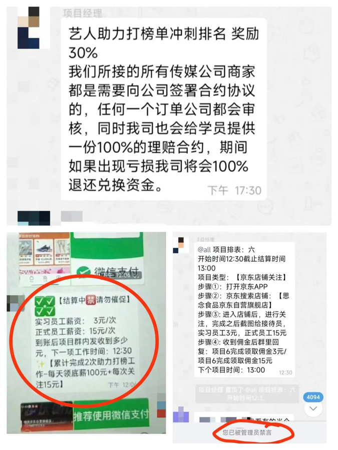 萌萌怕打草驚蛇,并沒有聲張,但在項目群里已被禁言,對方還在不斷威脅萌萌即將被起訴支付巨額賠償。據萌萌觀察,群里和項目大廳每天都在進新人,而完成任務打卡領錢的全部新面孔,以前的老人很有可能都被禁言了。萌萌慶幸自己沒有損失更多,也希望自己的經歷能夠為后來者敲響警鐘,切莫因小失大。