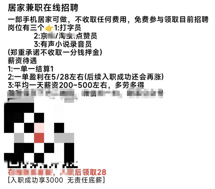 國慶期間,待業(yè)在家的萌萌在網上尋找兼職,無意間添加了一位好友,對方聲稱只要動動手指做點小任務,每天就能擁有幾百元的收入。