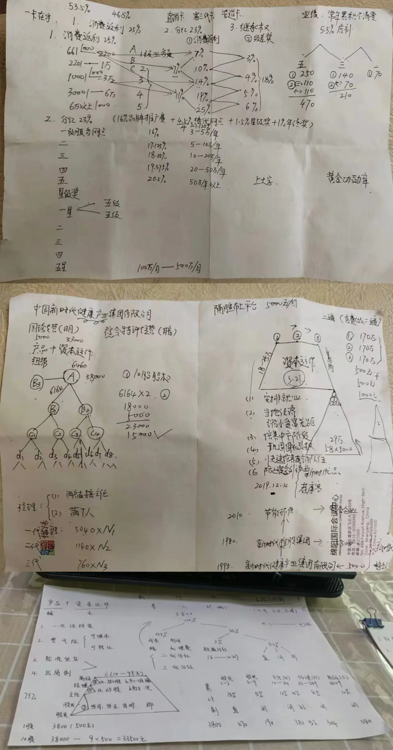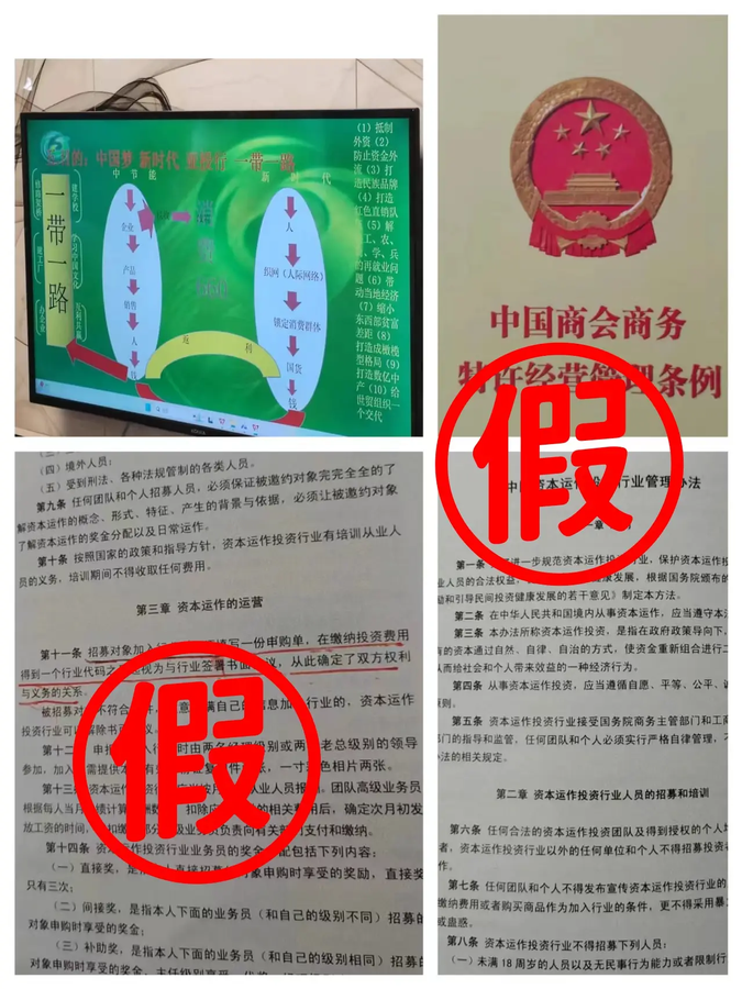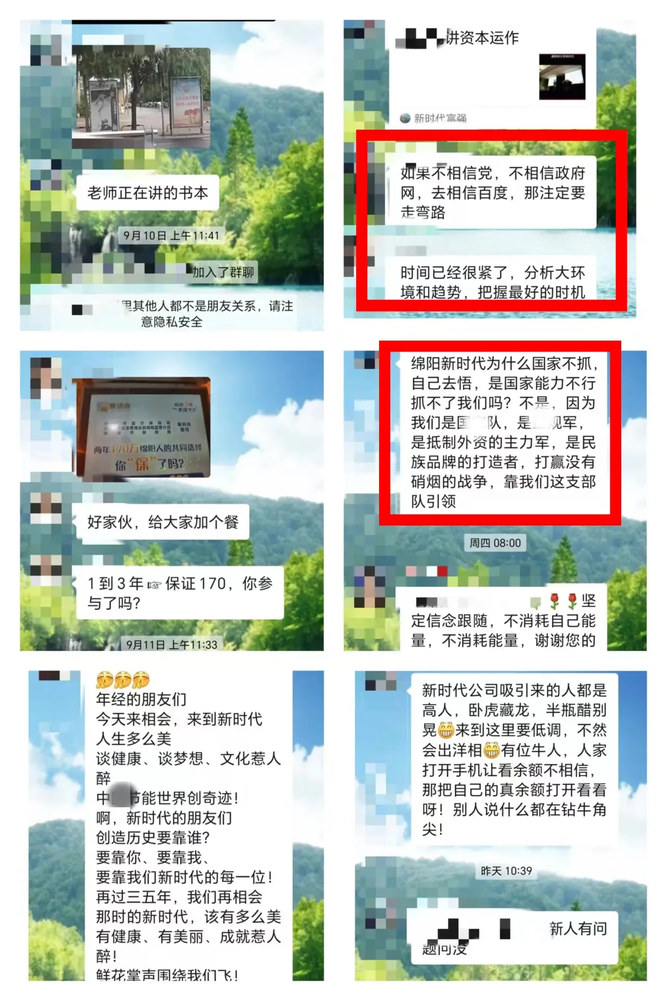 發(fā)表時(shí)間:2024-10-18 20:35作者:李旭反傳銷來(lái)源:李旭反傳防騙團(tuán)隊(duì) 四川綿陽(yáng)存在著這么一群人,他們心懷“中國(guó)夢(mèng)”,“忍辱負(fù)重”的在當(dāng)?shù)貫椤皣?guó)家”邁入“新時(shí)代”做著“貢獻(xiàn)”;他們號(hào)稱可以通過(guò)“資本運(yùn)作”安排就業(yè),縮小當(dāng)?shù)刎毟徊罹?/span>;他們鼓吹投資38000元兩年后即可出局獲得100-500萬(wàn)高額回報(bào)。這就是活躍在四川綿陽(yáng)一代,打著“新時(shí)代資本運(yùn)作”旗號(hào)的一伙傳銷組織的洗腦話術(shù)。 今年9月,網(wǎng)友小陳被朋友以找工作為名帶至四川綿陽(yáng),對(duì)方宣稱一次性繳納3萬(wàn)8千元就可進(jìn)入“中國(guó)夢(mèng)”主平臺(tái),贈(zèng)送10股加入“新時(shí)代健康產(chǎn)業(yè)集團(tuán)”。新人加入兩個(gè)月后返款6千元,還可以獲得5千元“新時(shí)代集團(tuán)”保健品。推薦一人可得6千多元,推薦6人即可回本。