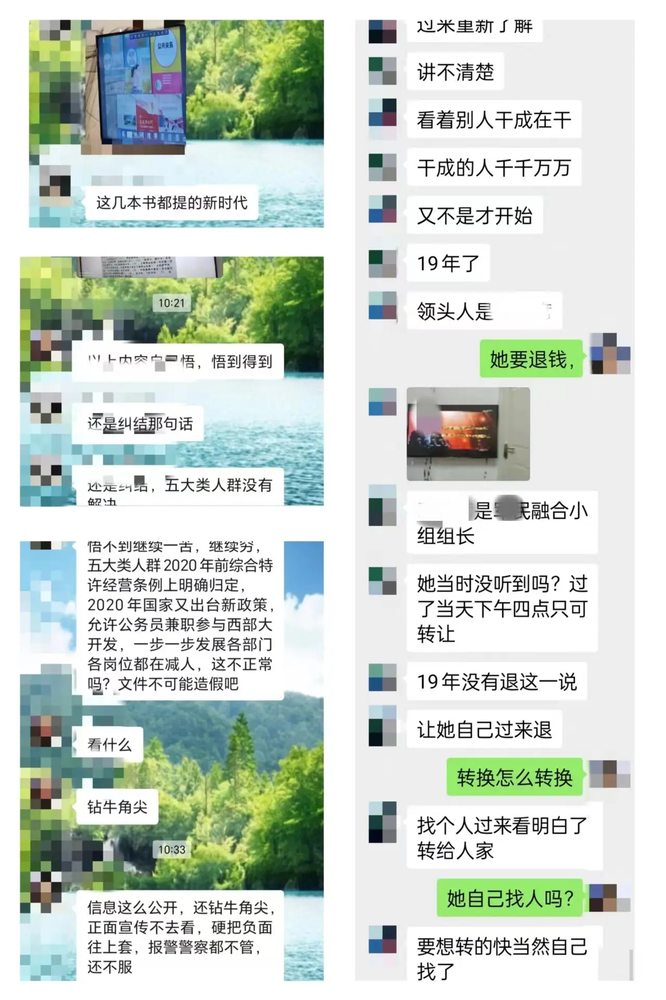 另一位網(wǎng)友小王的母親也不幸參與其中。小王介紹稱,對(duì)方會(huì)曲解各種當(dāng)?shù)氐貥?biāo)建筑或宣傳語(yǔ)為新人洗腦,偷換概念將國(guó)家“走進(jìn)新時(shí)代”的口號(hào)變成加入“新時(shí)代公司”企業(yè)。偽造各種紅頭文件曲解國(guó)家政策,以國(guó)家政策福利即將落地為新人畫(huà)大餅。在他們口中,自己是一群為了心中“夢(mèng)想”,“忍辱負(fù)重”的追夢(mèng)人。