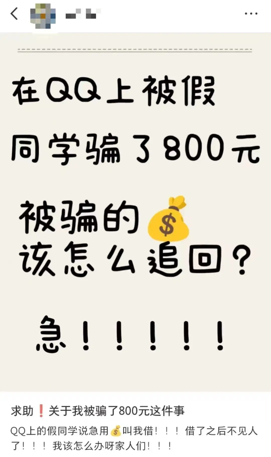 因遭遇冒充QQ好友騙局,小美損失了800元。在報(bào)警后,心急的她在小紅書APP發(fā)布了一則求助信息——“求助!關(guān)于我被騙了800元這件事!”
