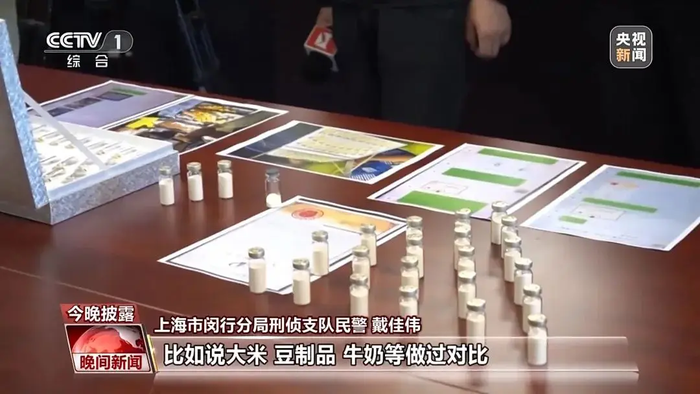 上海市閔行分局刑偵支隊(duì)民警戴佳偉:我們對(duì)所謂的增高粉做過(guò)相應(yīng)成分的檢驗(yàn),的確含蛋白質(zhì)和鈣含量,但是我們也與日常食物,比如大米、豆制品、牛奶等做過(guò)對(duì)比,遠(yuǎn)不如我們正常食用的食物。