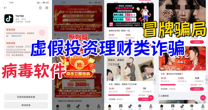 2、虛構偽造的“Tik0k”APP:病毒軟件 虛假投資理財類詐騙