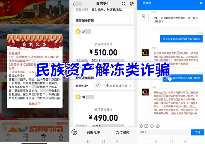 現(xiàn)在的民族資產(chǎn)解凍類詐騙團(tuán)伙通常打著國(guó)家、民族旗號(hào),通過(guò)偽造國(guó)家機(jī)關(guān)公文、證件、印章,編造國(guó)家相關(guān)政策等手段,虛構(gòu)“民族資產(chǎn)解凍”“養(yǎng)老幫扶”“精準(zhǔn)扶貧”等投資項(xiàng)目,誘騙受害人繳納“項(xiàng)目啟動(dòng)資金”“會(huì)員報(bào)名費(fèi)”投資入股,以此非法募集并騙取錢(qián)財(cái)。