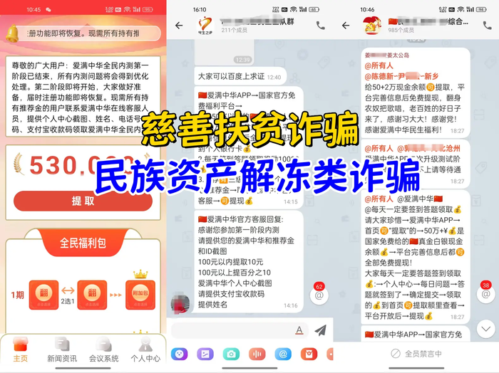 虛構(gòu)偽造的“愛(ài)滿中華”APP:扶貧詐騙 民族資產(chǎn)解凍類詐騙