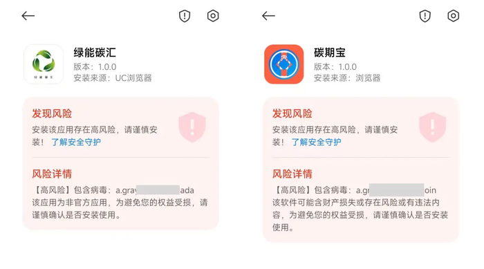 套牌的“綠能碳匯”APP-“碳期寶”APP:病毒軟件 虛假投資理財(cái)類詐騙