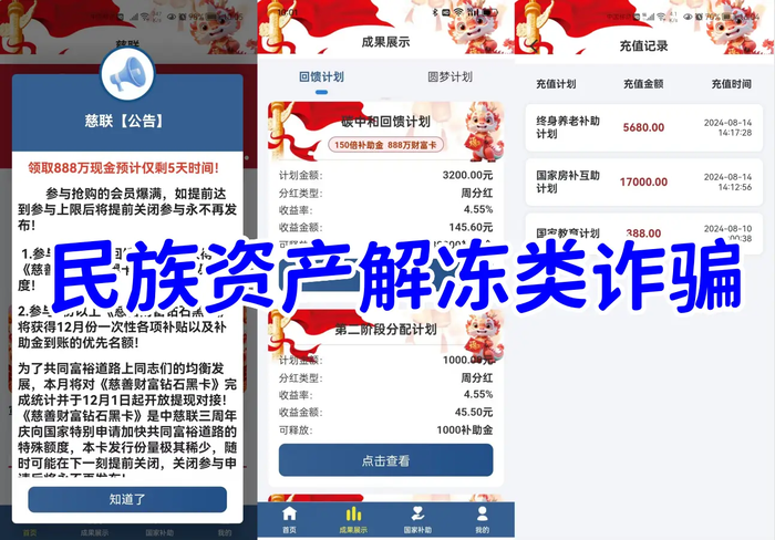 公安機關(guān)提醒廣大群眾,我國沒有任何民族資產(chǎn)解凍類項目和組織。請大家切實增強識騙意識、提高防騙能力。