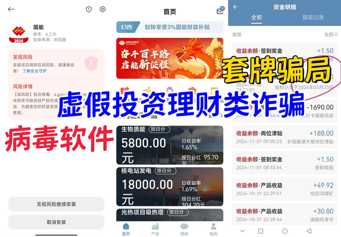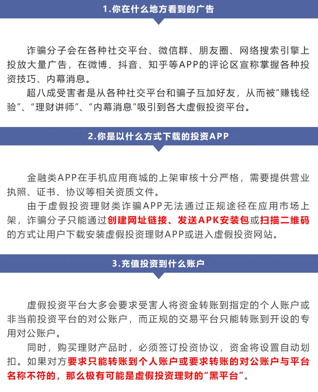 有網(wǎng)友已經(jīng)通過(guò)電話,聯(lián)系國(guó)能集團(tuán)進(jìn)行求證,確定這就是一個(gè)詐騙項(xiàng)目。 快速識(shí)別虛假投資理財(cái)類詐騙請(qǐng)記住這三招!