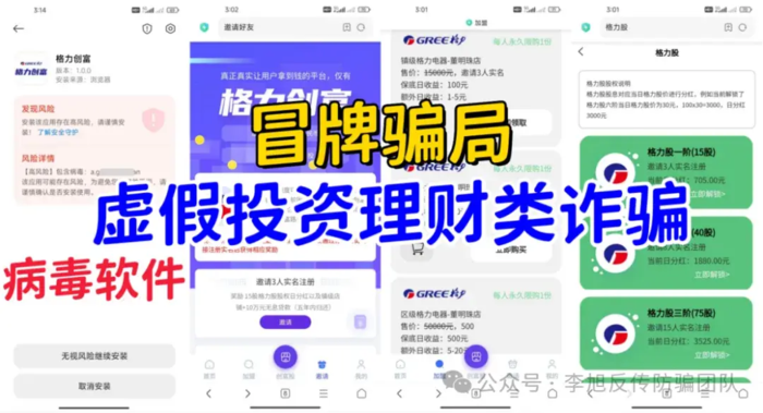 不法分子冒用華為公司的名義,制作并散布涉詐APP,打著慈善、扶貧、股權(quán)投資等名義實(shí)施詐騙。