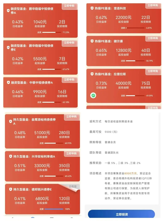 網(wǎng)友提供信息,稱該平臺售賣各種投資理財產(chǎn)品,收益率非常高。但該app需要邀請碼才可下載,且設(shè)立團隊等級,并根據(jù)推薦等級按照2%-5%的比例進行獎勵。