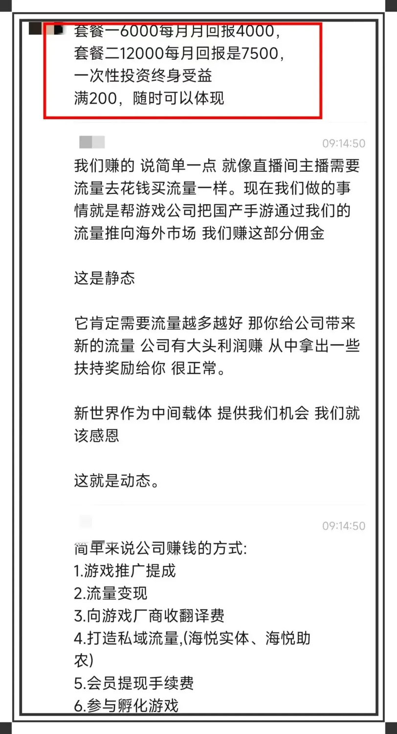 網(wǎng)友提供資料,用戶通過幫助游戲公司推廣手游賺取傭金,投資6千元每月回報4千元,投資1.2萬元每月回報7500元,滿200元可提現(xiàn)。