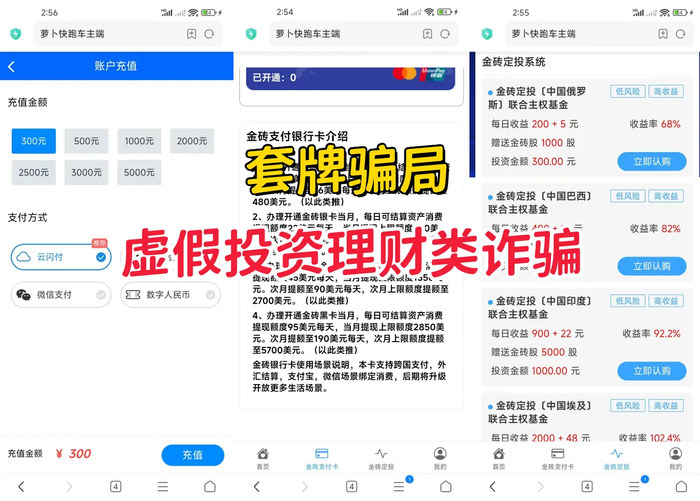 特別提示辦卡是需要繳費(fèi)的!同時(shí)又推出虛構(gòu)的“金磚定投”超高額理財(cái)項(xiàng)目實(shí)施詐騙。