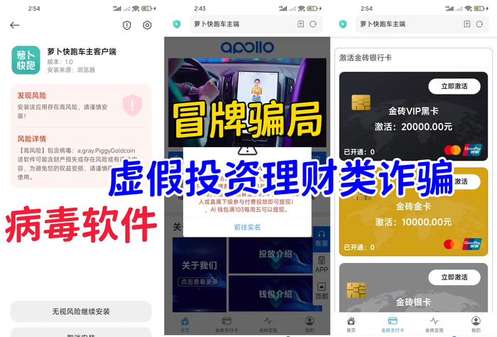 網(wǎng)友反饋,假冒的“蘿卜快跑”平臺(tái)很早就已經(jīng)無(wú)法提現(xiàn),為了穩(wěn)定參與者的情緒,近期又推出“蘿卜金磚”新騙局繼續(xù)行騙。