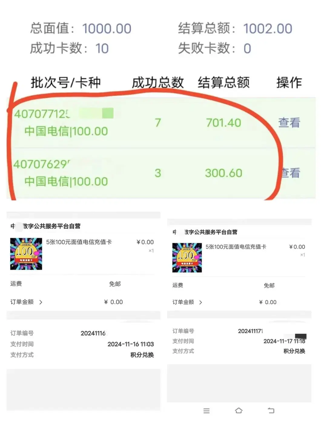 網(wǎng)友舉報該平臺通過買賣“電話充值卡”,宣稱投資1萬元每天返100元話費(fèi)卡,投資10萬元每天返卡1000元。