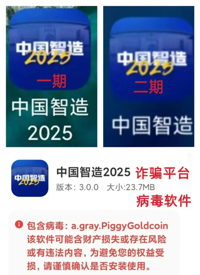 “中國(guó)智造2025”系不法分子冒充“澳門某某機(jī)械有限公司”成立的詐騙平臺(tái)。其APP攜帶病毒,涉嫌洗錢。