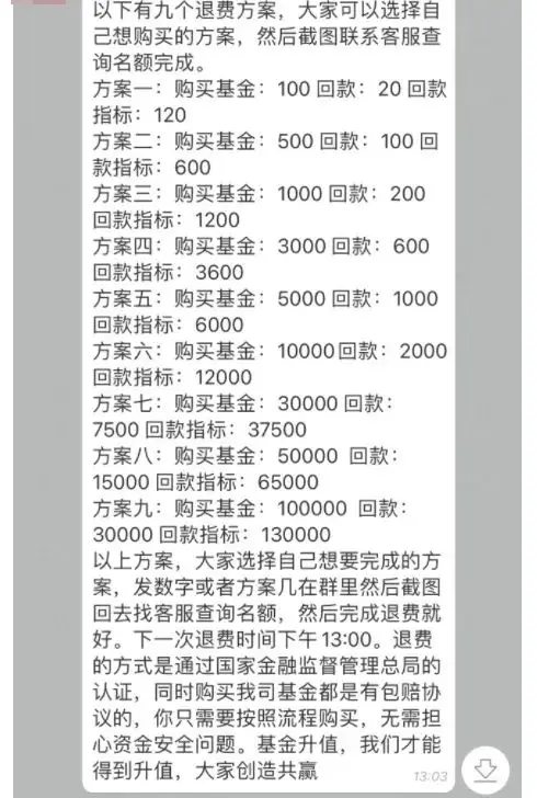 “客服”稱,之前的公司被一家基金公司收購了,所以現(xiàn)在提供的退款渠道只能通過購買基金增值的方式進(jìn)行,并且還發(fā)送了偽造的營業(yè)執(zhí)照打消其顧慮。隨后,將信將疑的朱先生就在客服的指導(dǎo)下下載了一款金融理財(cái)app,并根據(jù)回款方案購買了基金。