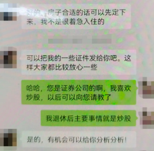 雙方添加了微信,小李稱自己是某證券公司的技術(shù)主管,因公司外派需要租房,看了小陳的房源資料,覺得很合適,打算長租3年,并且一次性付清費(fèi)用,還出示了自己的工作證件讓房東放心。小陳覺得這是個難得的理想租客,倆人很快熟絡(luò)起來,除了溝通租房信息,還時不時拉拉家常。