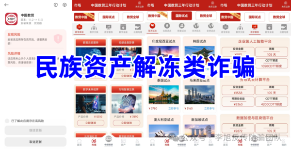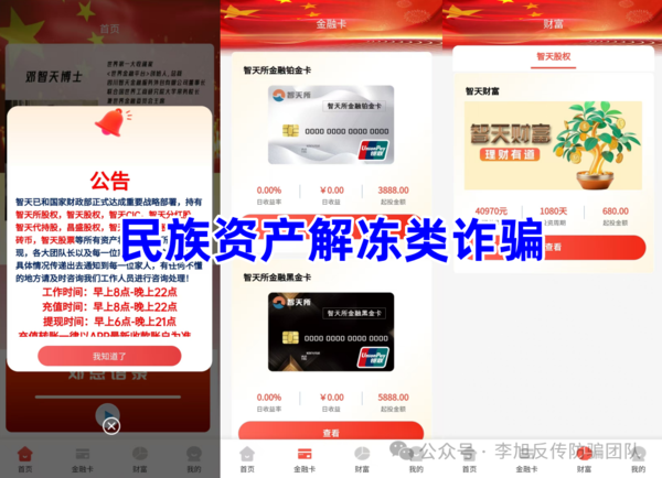 “民族資產(chǎn)解凍”是一種以虛構(gòu)歷史資產(chǎn)為幌子的傳統(tǒng)詐騙手段,犯罪分子常打著國(guó)家、民族旗號(hào),偽造國(guó)家機(jī)關(guān)公文、證件或項(xiàng)目,新型“民族資產(chǎn)解凍”騙局,冒充某部門的名義,虛構(gòu)慈善、扶貧、理財(cái)?shù)软?xiàng)目,誘騙受害人繳納費(fèi)用或參與投資?。