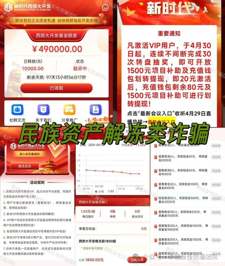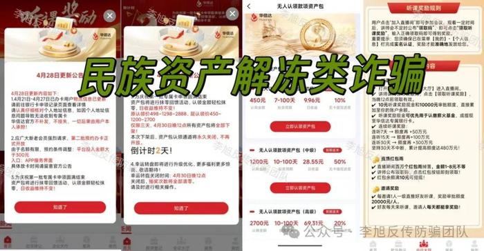 以結(jié)算“追夢人”款項吸引曾經(jīng)參與各類民族資產(chǎn)解凍項目的受騙者加入,制作散布涉詐APP,宣稱實(shí)名注冊繳納100元申請?zhí)柗Q內(nèi)含2億人民幣的“華某達(dá)卡”。推出所謂的“無人認(rèn)領(lǐng)資產(chǎn)包”理財項目,忽悠新人投資認(rèn)購獲得收益。近期該項目發(fā)布公告,將資產(chǎn)包打折優(yōu)惠出售,同時面對投資金額大于300元的用戶開放第二批辦卡通道大肆斂財,望警惕!