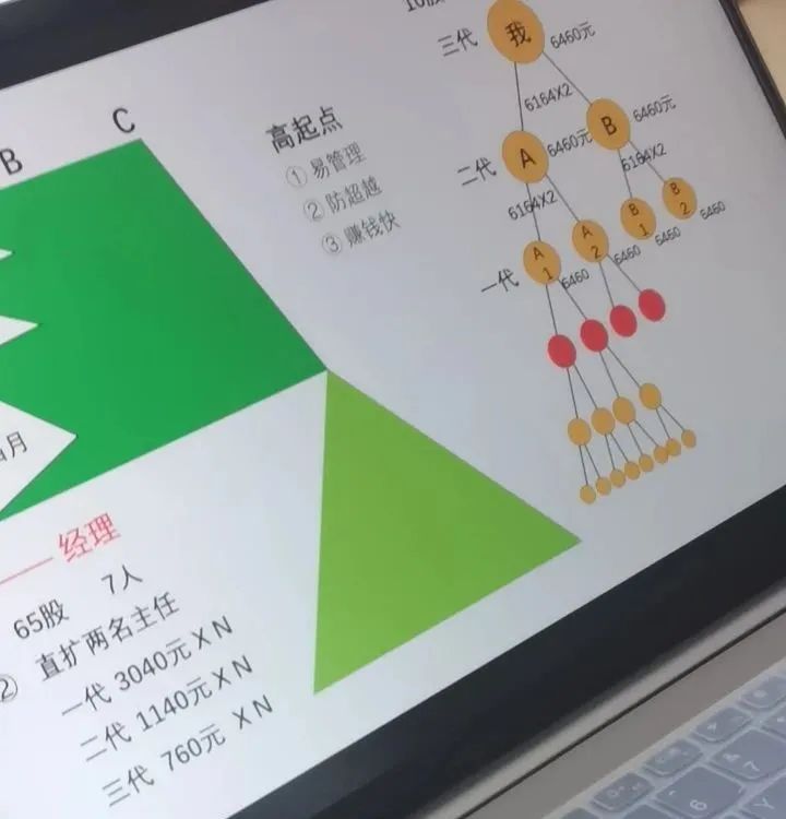 現(xiàn)在我們的綜合特許經(jīng)營,是大愛者的成功,是多數(shù)人的成功,普通人輕易做就可以出局?!毙菹⑵毯螅v師繼續(xù)誘惑道:“我們的模式很簡單,花38000元進入,只需要發(fā)展并服務新會員,通過連鎖網(wǎng)絡,55人就可以上平臺了,達到有星、有總。認真干1 - 2年時間,你就能成功出局賺100 - 500萬獎金,享受企業(yè)高管同等待遇。心動不如行動,還在猶豫什么呢?”