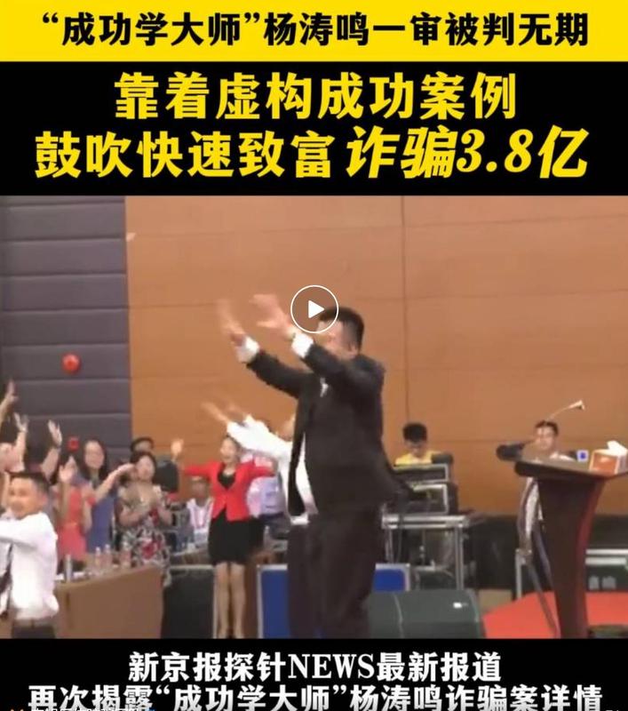 相關(guān)閱讀《“成功學(xué)大師”一審被判無期:虛構(gòu)成功案例鼓吹快速致富詐騙3.8億元》