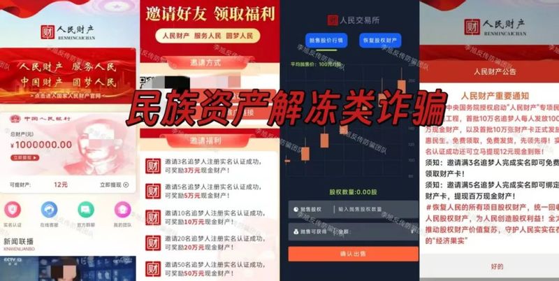 打著國家名義,宣稱實名注冊并邀請3名“追夢人”可領取“財產(chǎn)卡”,邀請5名可提現(xiàn)現(xiàn)金財產(chǎn),邀請數(shù)量決定提現(xiàn)金額。同時號稱可恢復所有項目股權(quán)財產(chǎn)并在交易所拋售變現(xiàn)。