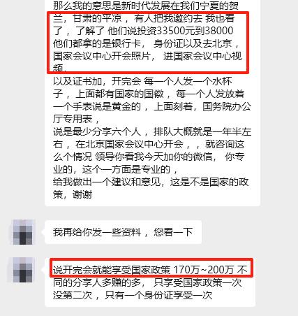 王先生(化名)同樣被誘騙至平?jīng)?,了解所謂的“北京新時代”項目。他從對方提供的資料中得知,顯得極具權威性。對方聲稱,只需投資33500元至38000元,便可在一年半后赴北京國家會議中心參加會議,享受170萬至200萬元的回報,且每人只能享受一次機會。