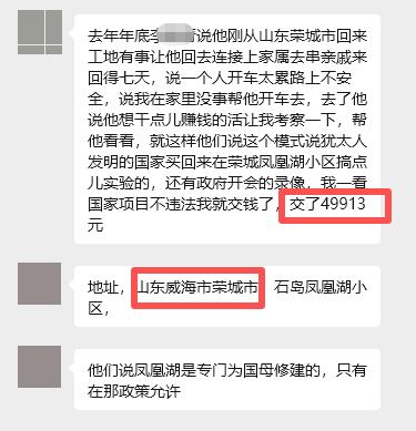 據(jù)周先生講述,“49913”模式極具迷惑性,它宣稱“不拉人也能出局掙600萬”,這一噱頭吸引了眾多不明真相的群眾參與,群體規(guī)模頗為龐大。參與者大多集中在榮成市內(nèi)的各個小區(qū),其中高鐵站附近的保集藍(lán)郡小區(qū),更是聚集了不少傳銷頭目。實際上,這一模式并非全新產(chǎn)物,而是由之前的青島“503”模式演變而來,在操作上比前者更為“簡便”。也正是“無需拉人就能賺錢”這一虛假承諾,讓許多人放松了警惕。