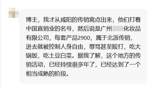 這是近期,一位網(wǎng)友被騙陜西咸陽北派傳銷組織的親身經(jīng)歷。