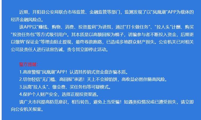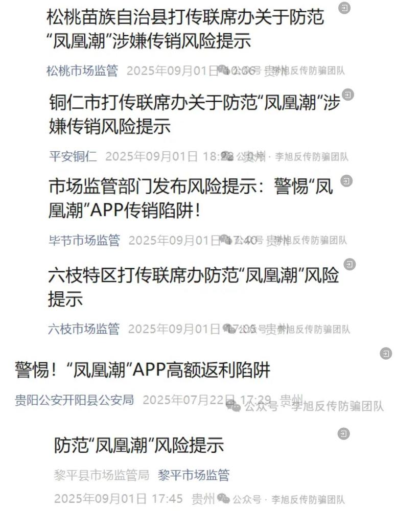 “鳳凰潮”APP被貴州全省通報(bào),數(shù)十地發(fā)布“涉嫌傳銷”風(fēng)險(xiǎn)提示,所有參與者必看!