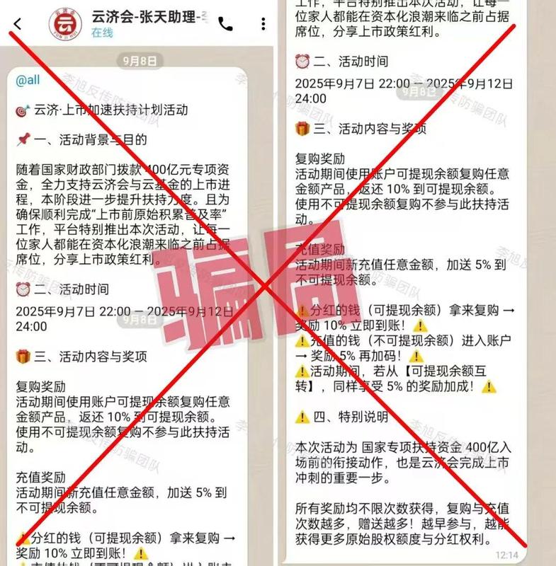 不斷在群里要求參與者交錢核準(zhǔn)資金,并聲稱9月9日之前未提現(xiàn)的資金將被收繳。