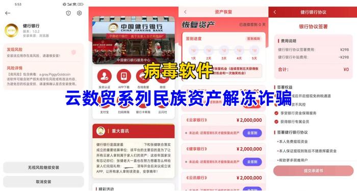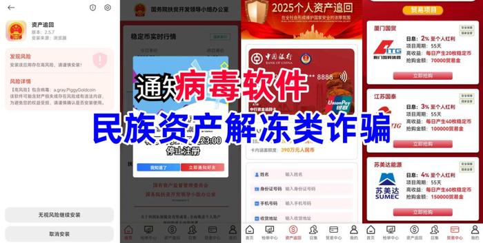 發(fā)表時(shí)間:2025-09-13 18:51作者:李旭反傳銷來源:李旭反傳防騙團(tuán)隊(duì) 當(dāng)“高收益、穩(wěn)賺不賠”的理財(cái)神話,遇上“拉人頭、層層返利”的致富捷徑,一個(gè)精心編織的復(fù)合型騙局便悄然張開巨網(wǎng)。這不僅是一場針對(duì)個(gè)人財(cái)富的“精準(zhǔn)收割”,更是一個(gè)依托人情鏈擴(kuò)散的“金融病毒”。 一:虛假理財(cái)傳銷/詐騙 1、套牌的“芯光云XGAI”APP 虛假理財(cái)詐騙。不法分子冒充馬來西亞一家公司,制作散布涉詐APP,虛構(gòu)推廣“AI智能法律咨詢系統(tǒng)”“企業(yè)級(jí)AI算力獨(dú)立工作站”“集成式邊緣計(jì)算終端”“意大利云基礎(chǔ)建設(shè)二期”等每日返息到期返本理財(cái)項(xiàng)目。 ![]() 據(jù)網(wǎng)友反饋,該應(yīng)用只能通過第三方鏈接、安裝包下載,下載提示未備案,采用傳銷模式發(fā)展下線,收取款賬戶為第三方個(gè)人、公司、虛擬貨幣,涉嫌傳銷、詐騙、洗錢等違法行為。 2、套牌的“綠地Greenland”APP 虛假投資理財(cái)詐騙。不法分子冒充香港“綠地”公司的名義,制作散布涉詐APP,虛構(gòu)推廣“中國夢(mèng)專項(xiàng)社會(huì)保障金”“社會(huì)基礎(chǔ)民生保障股權(quán)”“AI賦能智核創(chuàng)新工程”“育兒補(bǔ)貼基金”等高額返利理財(cái)項(xiàng)目。 ![]() 該項(xiàng)目只能通過第三方鏈接、二維碼、安裝包下載,下載提示未備案,收款賬戶為第三方個(gè)人、公司,涉嫌詐騙。 3、“雪花SNOW AI” 虛擬貨幣類資金盤。近期,多位網(wǎng)友咨詢一個(gè)名為“SNOW AI”量化的投資項(xiàng)目,參與其中日收益率高達(dá)0.7%-4.95%,一個(gè)月即可回本。 ![]() 不法分子制作散布涉詐APP,虛構(gòu)推廣“SOL-XRP高頻 CTA 量化策略 30 天”“ETH-SOL高頻 CTA 量化策略 60 天”“BTC-ETH高頻 CTA 量化策略 90 天”等高額返利理財(cái)項(xiàng)目。 據(jù)網(wǎng)友提供的資料,該應(yīng)用只能通過第三方鏈接下載,下載提示未備案,收款賬戶為虛擬貨幣,涉嫌詐騙、洗錢等違法行為。 4、虛構(gòu)的“富達(dá)管家”APP 不法分子冒充美國“富達(dá)投資集團(tuán)”的名義,制作散布涉詐APP,打著“茶葉”投資的旗號(hào),虛構(gòu)推廣“金典中國龍”“金花茯豪”“手筑茯磚”“花卷十兩茶”等日利率1%-1.2%高額理財(cái)項(xiàng)目。 ![]() 參與者需要通過第三方鏈接下載,下載提示未備案,收款賬戶為第三方個(gè)人、公司,涉嫌詐騙。 5、冒牌的“國窖傳奇”APP 不法分子冒充“茅臺(tái)公司”的名義,制作散布涉詐APP,虛構(gòu)推廣“蛇年基金”“健康保障基金”“蛇年生肖酒”等高額理財(cái)項(xiàng)目。 ![]() 去年12月6日,信息通信行業(yè)反詐中心發(fā)文《【仿冒APP觀察室】“酒”中騙局》,文中詳細(xì)解析“國窖傳奇”APP是詐騙軟件。 https://mp.weixin.qq.com/s/k2r64jVy8uxaB6eAGgEoOQ?scene=1 ![]() 三:民族資產(chǎn)解凍類詐騙 1、虛構(gòu)的“資產(chǎn)追回”APP 不法分子打著“扶貧”的旗號(hào),制作散布涉詐APP,注冊(cè)提供個(gè)人信息,辦理資金追回銀行卡,即可獲得追回個(gè)人資產(chǎn)260萬元,要錢他人參與可獲得現(xiàn)金紅包,同時(shí)虛構(gòu)推廣“穩(wěn)定幣”“廈門國貿(mào)”“江蘇國泰”“蘇美達(dá)能源”高額返利理財(cái)項(xiàng)目。 ![]() 據(jù)網(wǎng)友反饋,該應(yīng)用只能通過第三方鏈接下載,下載提示未備案,帶病毒,采用傳銷模式發(fā)展下線,涉嫌非法搜集個(gè)人信息、傳銷、詐騙。 2、“鑫承善掃描簽到”項(xiàng)目 近日,網(wǎng)友反饋,一個(gè)名為“鑫承善”掃描簽到項(xiàng)目,該項(xiàng)目自稱,提供個(gè)人信息,掃各種二維碼、看視頻、看廣告、簽到學(xué)習(xí),即可獲得45萬扶貧款、每名參與者還可以獲得每月5500元的工作等。 該項(xiàng)目是由“善恒”改名而來,“善恒”此前北京警方打擊。 新聞:在鳥巢召開股東大會(huì),每位股東分紅2萬元?北京警方:辦了! https://mp.weixin.qq.com/s/VBHcAEzBfNTiEvw1N-TZog ![]() 3、虛構(gòu)的“健行銀行”APP 不法分子打著“云數(shù)貿(mào)張健”的旗號(hào),制作散布涉詐APP,聲稱參與者實(shí)名注冊(cè),簽署“資產(chǎn)保密”即可獲得“380萬”扶貧款,每天簽到可恢復(fù)“五行銀行”“云家銀行”“健享銀行”等資產(chǎn)。 ![]() 該應(yīng)用只能通第三方鏈接下載,下載提示未備案,帶病毒,涉嫌非法搜集個(gè)人信息、詐騙。 4、虛構(gòu)的“大國智造”APP ![]() 三:異地聚集式傳銷 1、河北雄安“十四五經(jīng)濟(jì)分享”24375傳銷 模式:該傳銷組織打著“十四五經(jīng)濟(jì)分享”“側(cè)結(jié)構(gòu)分享經(jīng)濟(jì)”等旗號(hào),鼓吹投資24375元加入該組織,出局可以獲得1.1億元的回報(bào)。 [此文來源:李旭反傳防騙團(tuán)隊(duì),版權(quán)說明:以上文字及圖片來源于網(wǎng)絡(luò),僅供學(xué)習(xí)和交流使用,不具有任何商業(yè)用途,其目的在于傳遞更多的信息,并不代表本平臺(tái)贊同其觀點(diǎn)。版權(quán)歸原作者所有,如涉版權(quán)或來源標(biāo)注有誤,請(qǐng)及時(shí)和我們?nèi)〉寐?lián)系,我們將迅速處理,謝謝!]