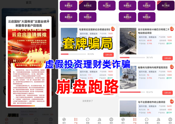 提示廣大網(wǎng)友避免上當受騙。后改項目改名為“云啟國際”繼續(xù)行騙,前天下午APP打不開,崩盤跑路。
