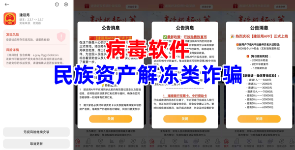 發(fā)表時間:2025-09-21 18:13作者:李旭反傳銷來源:李旭反傳防騙團隊 近年來,虛假理財詐騙、傳銷與 “民族資產(chǎn)解凍” 騙局不斷疊加滲透,用 “家國大義” 包裝貪婪,用 “高息回報” 編織陷阱,讓無數(shù)人在多重誘惑下迷失方向,最終落得財產(chǎn)盡失的結(jié)局。 一:虛假理財傳銷/詐騙 1、套牌的“融石”APP 套牌理財詐騙。不法分子冒充境外合格投資者“融石資本”公司的名義,制作散布涉詐APP,虛構(gòu)推廣“華夏新錦繡混合A”“金鷹核心資源混合A”“中航機遇領(lǐng)航混合發(fā)起A”“長安鑫瑞科技6個月定開混合A”“永贏科技智選混合發(fā)起A”等日收益率0.38%-0.8%高額理財項目。 ![]() 據(jù)網(wǎng)友反饋,該應(yīng)用只能通過第三方鏈接、二維碼下載,下載提示未備案,收款賬戶為第三方個人、公司,虛擬貨幣交易,采用傳銷模式發(fā)展下線,涉嫌傳銷、詐騙、洗錢等違法行為。 2、套牌的“國能”APP 不法分子冒充“國家能源集團”公司的名義,制作散布涉詐APP,虛構(gòu)推廣高額返利理財項目實施詐騙。 近日網(wǎng)友反饋,該項目目前無法提現(xiàn),聲稱10月1號才可以提現(xiàn),疑似軟跑路。 ![]() 3、套牌的“粵港澳大灣區(qū)/共建大灣區(qū)”APP 不法分子冒充“粵港澳大灣區(qū)辦公室”的名義,制作散布涉詐APP,虛構(gòu)推廣高額返利理財項目實施詐騙。 網(wǎng)友反饋,該項目在8月底,就出現(xiàn)無法提現(xiàn)的情況,聲稱9月1號提現(xiàn),后來又聲稱出問題,要推遲1個月才能提現(xiàn)。疑似軟跑路。 ![]() 二:民族資產(chǎn)解凍類詐騙 1、虛構(gòu)的“智能中國”APP 不法分子打著“推進數(shù)字中國、智能中國建設(shè)”等旗號,制作散布涉詐APP,虛構(gòu)推廣“綠色建筑智慧節(jié)能改造工程”“智慧養(yǎng)老服務(wù)平臺工程”“智慧防災(zāi)減災(zāi)應(yīng)急系統(tǒng)”“嶗山智慧康養(yǎng)數(shù)字津貼系統(tǒng)”等高額返利理財項目。 ![]() 據(jù)網(wǎng)友反饋,該項目只能通過第三方鏈接、二維碼、安裝包下載,下載提示未備案,采用傳銷模式拉人頭發(fā)展下線,收款賬戶為第三方個人、公司,涉嫌傳銷、詐騙。 2、虛構(gòu)的“建設(shè)局”APP 不法分子冒充“國家某部門”的名義,制作散布涉詐APP,聲稱參與者實名注冊即可獲得10000元個人補助金,提供個人信息,免費領(lǐng)取房產(chǎn)、繳納費用辦理銀行卡,可領(lǐng)取189萬、389萬資助金。 ![]() 每天簽到獲得2000元補助金,2枚“中華致富幣”,邀請的人越多,獎勵越高,同時推出“鐵道債”“建設(shè)債”“匯金債”等高額理財項目。 ![]() 據(jù)網(wǎng)友反饋,該應(yīng)用只能通過第三方鏈接、安裝包下載,下載提示未備案,帶病毒,收款賬戶為第三方個人,公司,涉嫌傳銷、詐騙、非法搜集個人信息等違法行為。 3、虛構(gòu)的“螞蟻國際錢包”APP 不法分子冒充“螞蟻科技集團公司”的名義,制作散布涉詐APP,該項目聲稱參與者實名注冊,即可獲得1千枚USDT,8千枚螞蟻穩(wěn)定幣,1000螞蟻股權(quán),發(fā)展人數(shù)越多,獲得的穩(wěn)定幣,螞蟻股權(quán)越多。 ![]() 據(jù)網(wǎng)友反饋,參與該項目只能通過第三方鏈接下載,下載提示未備案,帶病毒,采用傳銷模式發(fā)展下線,收款賬戶為第三方個人,涉嫌傳銷、詐騙、非法搜集個人信息等違法行為。 此前,就有不法分子冒充螞蟻公司的名義推出稀土穩(wěn)定幣,螞蟻公司發(fā)布聲明提示廣大網(wǎng)友。 ![]() 4、套牌的“亞數(shù)行”APP 虛擬貨幣類詐騙。不法分子冒充“亞太投資銀行”的名義,制作散布涉詐APP,聲稱實名注冊即可獲得2萬穩(wěn)定幣,20萬支付金,邀請人越多,獎勵越多。 ![]() 該應(yīng)用只能通過第三方鏈接下載,下載提示未備案,收款賬戶為第三方個人,涉嫌傳銷、詐騙、洗錢。 5、虛構(gòu)的“龍寶”APP ![]() 三:異地聚集式傳銷 1、河北、山東等地“天悅系統(tǒng)”48000傳銷 模式:該傳銷組織打著“天悅系統(tǒng)”“旅游研討會”“民間金融理財”等旗號,內(nèi)部宣講公排、跳牌、保本彈出,滿點晉升等,參與者繳納48000元加入小盤,繳納14.3萬元加入大盤,大小盤同做19.1萬元,出局可以獲得1200萬元的回報。 ![]() 2、河北“中綠平債”2900傳銷 模式:該傳銷組織打著“中綠”公司的名義,聲稱參與者可以平掉債務(wù)、消除違法記錄,參與者只需要繳納2900元至43500元加入該組織,采用五級三階制發(fā)展下線,出局可以獲得180萬元至1.5億元的回報。 3、廣西防城港“資本運作”69800傳銷 模式:該傳銷組織打著“資本運作”“國家項目”等名義,鼓吹投資69800元加入該組織,出局可以獲得1040萬元的回報。 [此文來源:李旭反傳防騙團隊,版權(quán)說明:以上文字及圖片來源于網(wǎng)絡(luò),僅供學習和交流使用,不具有任何商業(yè)用途,其目的在于傳遞更多的信息,并不代表本平臺贊同其觀點。版權(quán)歸原作者所有,如涉版權(quán)或來源標注有誤,請及時和我們?nèi)〉寐?lián)系,我們將迅速處理,謝謝!]