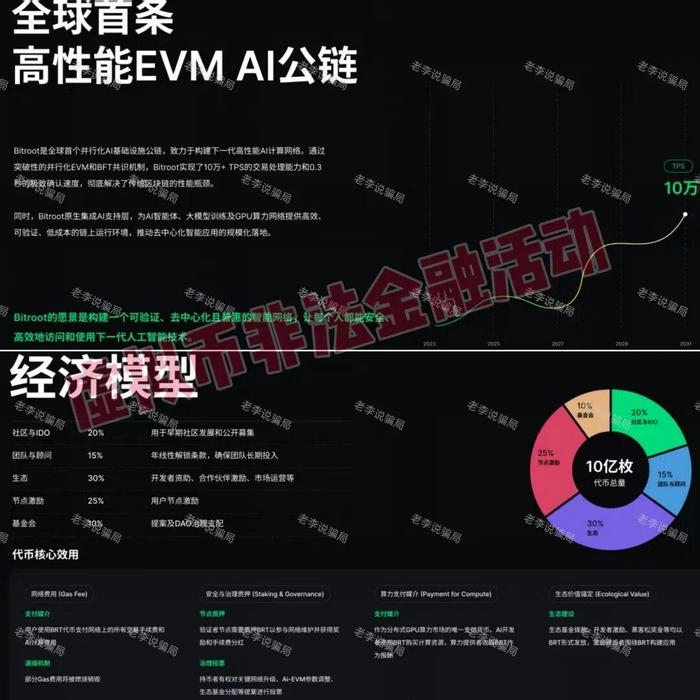 號(hào)稱“全球首條高性能EVM AI公鏈”,但EVM等核心技術(shù)未經(jīng)驗(yàn)證,代幣分配中的“生態(tài)資金”“節(jié)點(diǎn)激勵(lì)”全是空頭承諾,毫無(wú)生態(tài)支撐。