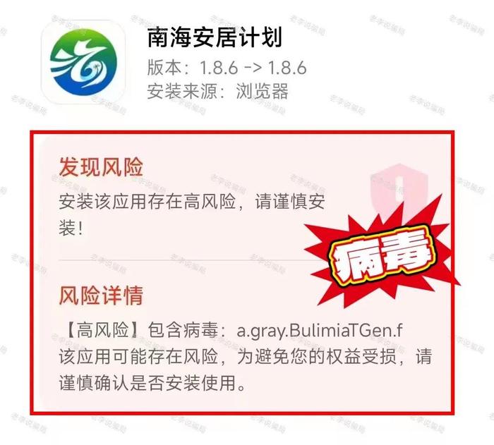 冒充“海南省房屋綜合業(yè)務(wù)中心”,以免費(fèi)申報(bào)房產(chǎn)吸引用戶下載,申領(lǐng)不同級(jí)別的“海南卡”。虛構(gòu)推廣日收益超過(guò)8%的虛假投資理財(cái)項(xiàng)目。下載提示未備案且攜帶病毒。