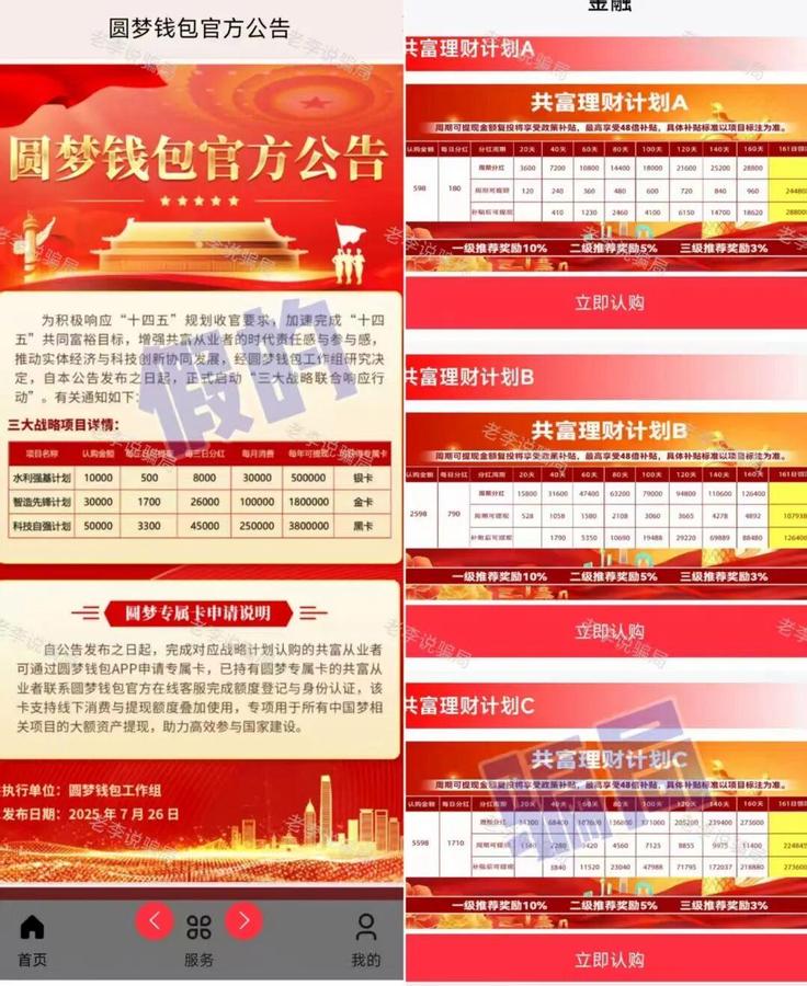 2. “官方背景”靠造假: 真正的國家項目,絕不會通過無名APP向公眾募資。遇到聲稱是“央企”、“部委”合作的項目,請第一時間去該機構官網核實,或撥打官方熱線求證。