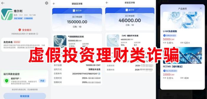 發(fā)表時間:2025-11-12 11:38作者:李旭反傳銷來源:李旭反傳防騙團(tuán)隊 近年來,隨著數(shù)字技術(shù)與金融活動的深度融合,各類投資理財平臺憑借其便捷性吸引了大量用戶。然而,這一趨勢也被不法分子所利用,各類虛假APP與投資騙局層出不窮,嚴(yán)重侵害公眾財產(chǎn)安全,擾亂金融市場秩序。 1、套牌的“利名共創(chuàng)”APP 套牌詐騙。不法分子冒充香港某公司的名義,打著“代償服務(wù)”的旗號,虛構(gòu)推廣“車貸代償”“房貸代償”“企業(yè)代償”等按天計息,到期返本息,高額返利項目,同時該項目采用傳銷模式發(fā)展下線。 ![]() 據(jù)網(wǎng)友反饋的資料,該應(yīng)用只能通過第三方鏈接下載、下載提示未備案,收款賬戶為第三方個人、公司,涉嫌傳銷、詐騙等違法行為。 2、套牌的“維某利”APP 套牌詐騙。不法分子冒充香港某公司的名義,制作散布涉詐APP,打著“醫(yī)療器械、醫(yī)療產(chǎn)品”投資的旗號,虛構(gòu)推廣“氣管插管穩(wěn)定系統(tǒng)”“輔助手術(shù)系統(tǒng)”“U-NK免疫細(xì)胞”“PET/MR”等到期返本返息高額理財項目,采用傳銷模式發(fā)展下線。 ![]() 據(jù)網(wǎng)友反饋的資料,該應(yīng)用無法通過應(yīng)用商城下載,只能通過第三方鏈接下載,下載提示未備案,收款賬戶為第三方個人、公司、虛擬貨幣,涉嫌傳銷、詐騙、洗錢等違法行為。 3、虛構(gòu)的“數(shù)農(nóng)國際”APP 套牌詐騙。不法分子冒充“阿里巴巴數(shù)字農(nóng)業(yè)”公司的名義,,制作散布涉詐APP,推出“農(nóng)業(yè)幣”虛構(gòu)推廣“數(shù)農(nóng)儲蓄”“數(shù)農(nóng)標(biāo)桿”高額返利項目。 ![]() 網(wǎng)友反饋,該應(yīng)用只能通過第三方鏈接、二維碼下載,下載提示未備案,收款賬戶為第三方個人、公司,采用傳銷模式發(fā)展下線,涉嫌傳銷、詐騙等違法行為。 4、虛構(gòu)的“馬爾代夫”APP 云數(shù)貿(mào)系列詐騙。不法分子打著“張健”的名義,制作散布涉詐APP,宣傳實名注冊即可獲得1500萬元,發(fā)展下線可獲得五星幣,每一枚價值200萬元,但想要提現(xiàn),必須交錢辦理白名單。 ![]() 據(jù)網(wǎng)友反饋的資料,該項目只能通第三方鏈接、安裝包下載,下載提示未備案,收款賬戶為第三方個人,涉嫌非法搜集個人信息、傳銷、詐騙、洗錢等違法行為。 5、虛構(gòu)的“華為穩(wěn)定幣”APP 不法分子冒充華為公司的名義,制作散布涉詐APP,聲稱推出“華為穩(wěn)定幣”,一枚市值1萬元,實名注冊贈送382萬現(xiàn)金、礦機(jī),發(fā)展下線贈送現(xiàn)金,礦機(jī)、手機(jī)、汽車等。 ![]() 網(wǎng)友反饋,該應(yīng)用只能通過第三方鏈接下載,下載提示未備案,涉嫌非法搜集個人信息、詐騙等違法行為。 6、套牌的“安我股?!盇PP 股票跟單詐騙。不法分子冒充香港某公司的名義,制作散布涉詐APP,打著聚散成塔的旗號,聲稱跟著“專家”智能投股,可以穩(wěn)賺不賠。 ![]() 該應(yīng)用只能通過第三方鏈接下載,下載提示未備案,收款賬戶為第三方個人、公司,涉嫌詐騙。 7、虛構(gòu)的“中國人際網(wǎng)”APP 不法分子打著“國網(wǎng)IPV9”的旗號,制作散布涉詐APP,聲稱實名注冊,即可獲得1萬股國網(wǎng)股權(quán),100萬國網(wǎng)分紅,領(lǐng)取“國網(wǎng)GK卡”。 ![]() 據(jù)網(wǎng)友反饋,該應(yīng)用無法通過正規(guī)應(yīng)用商城下載,下載提示未備案,涉嫌非法搜集個人信息、詐騙。 8、套牌“BP石油” 套牌詐騙。不法分子冒充境外BP金控公司的名義,制造散布涉詐網(wǎng)址,虛構(gòu)推廣“油田板塊”“新能源板塊”“化工板塊”等高額返利理財項目。 ![]() 據(jù)網(wǎng)友反饋,該項目無APP,只能通過鏈接、二維碼參與,收取款賬戶為第三方個人、公司、虛擬貨幣,涉嫌詐騙、洗錢等違法行為。 |