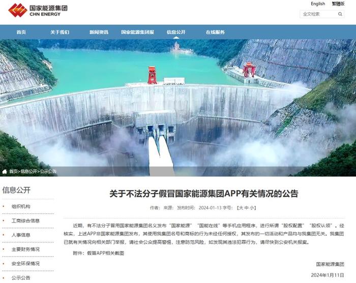 套牌騙局,不法分子冒充“國家能源集團”公司的名義,制作散布涉詐APP,虛構推廣高額返利理財項目實施詐騙。