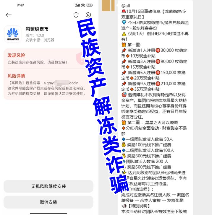 近期,以“數(shù)字資產”“國家平臺”“高額返利”為誘餌的詐騙活動頻繁出現(xiàn),不法分子通過偽造國家機關或知名企業(yè)名義,精心包裝各類虛假投資理財項目,誘騙公眾下載涉詐APP并投入資金。