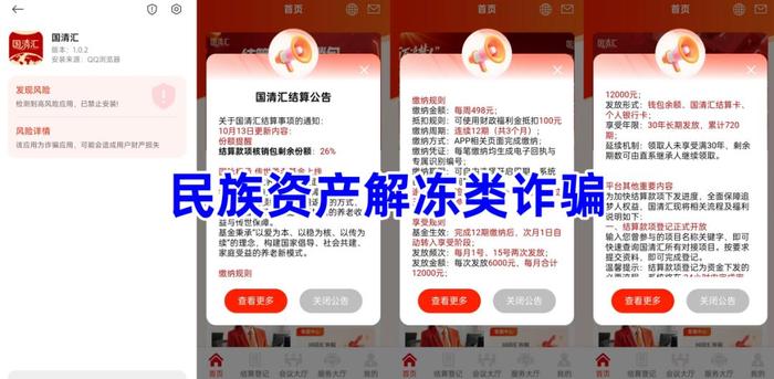 民族資產解凍類詐騙。不法分子冒充“商務部”的名義,制作散步涉詐APP,虛構推廣高額返利理財項目實施詐騙。