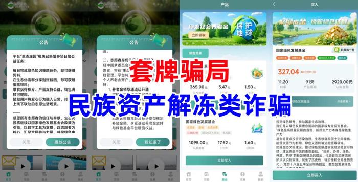 民族資產(chǎn)解凍類詐騙。不法分子冒充“國家綠色發(fā)展基金”的名義,打著“東望志愿者回歸”的旗號,宣傳回歸者可領取養(yǎng)老金,虛構(gòu)推廣“國家綠色發(fā)展基金”等高額返利理財項目。