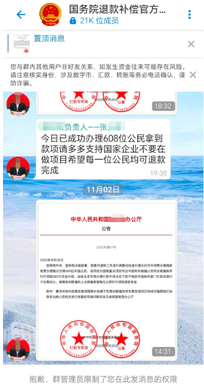 這些精心設(shè)計的騙局,讓王大爺和其他受騙者難辨真?zhèn)?。“那么多領(lǐng)導(dǎo)講話視頻,難道都是AI制作?正規(guī)流程、完備證件,還有國家前領(lǐng)導(dǎo)擔(dān)保,誰能不信?”他滿心困惑。而受騙者中,不僅有老年人,還有不少年輕人,他所在的各類“追損”“扶貧”群均有數(shù)千成員,騙局仍在持續(xù)上演。
