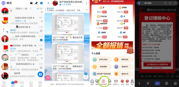 平臺APP功能完備,涵蓋理賠、資產(chǎn)追回、公債等多個板塊,還展示“中國銀行電子回單”等虛假憑證,營造“銀行參與發(fā)款”的假象。更迷惑人的是,部分平臺偽造國務(wù)院辦公廳公告、財政撥款通知書,標(biāo)注編號、經(jīng)辦人、公章,落款日期看似規(guī)范。