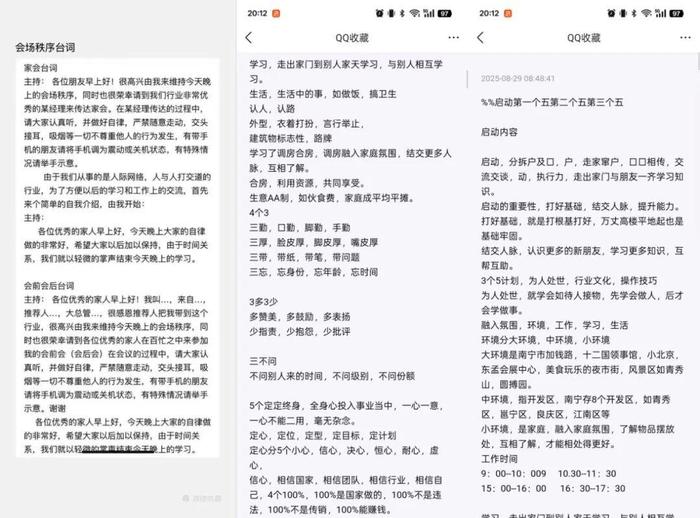1.課程轟炸:每天安排四場(chǎng)固定時(shí)段的"學(xué)習(xí)",正班講解"南寧發(fā)展前景""3800元投入回報(bào)381萬(wàn)""連鎖業(yè)與傳銷(xiāo)的區(qū)別"等核心話術(shù);副班負(fù)責(zé)新人啟動(dòng)、邀約技巧、揭謊引導(dǎo)等實(shí)操內(nèi)容,讓受害者快速掌握"行業(yè)規(guī)則";
