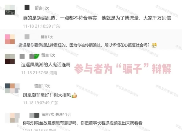 發(fā)表時(shí)間:2025-11-24 19:47作者:李旭反傳銷(xiāo)來(lái)源:李旭反傳防騙團(tuán)隊(duì) 就在前幾天,李旭反傳防騙團(tuán)隊(duì)接到多位網(wǎng)友反饋,“鳳凰潮”葉某已于11月6日被相關(guān)部門(mén)抓捕歸案。 在與“帽子叔叔”電話核實(shí)消息準(zhǔn)確后,我們將此信息通過(guò)視頻、文章告知大眾,希望參與者看到后能盡快醒悟,及時(shí)報(bào)案減少損失。 《確定!“鳳凰潮”葉某已經(jīng)抓,崩盤(pán)在即。參與者是時(shí)候醒悟了!》 但是,遺憾的是,我們的視頻依舊被參與者舉報(bào)限流,很多“信徒”更是不愿相信,在評(píng)論區(qū)出言不遜為騙子“辯解”。