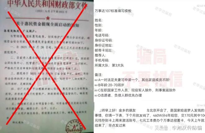 偽造紅頭文件,以發(fā)放“惠民金”的名義,要求參與者填寫詳細(xì)個人身份信息,并繳納170元激活費(fèi)領(lǐng)取所謂的“萬事達(dá)卡”。